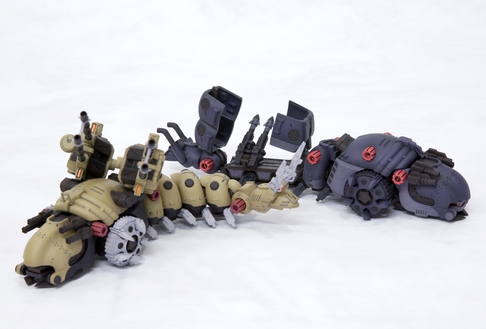 - Two caterpillar-type Zoids are included in this set for you to build both the Molga AA and Molga Carrier.
